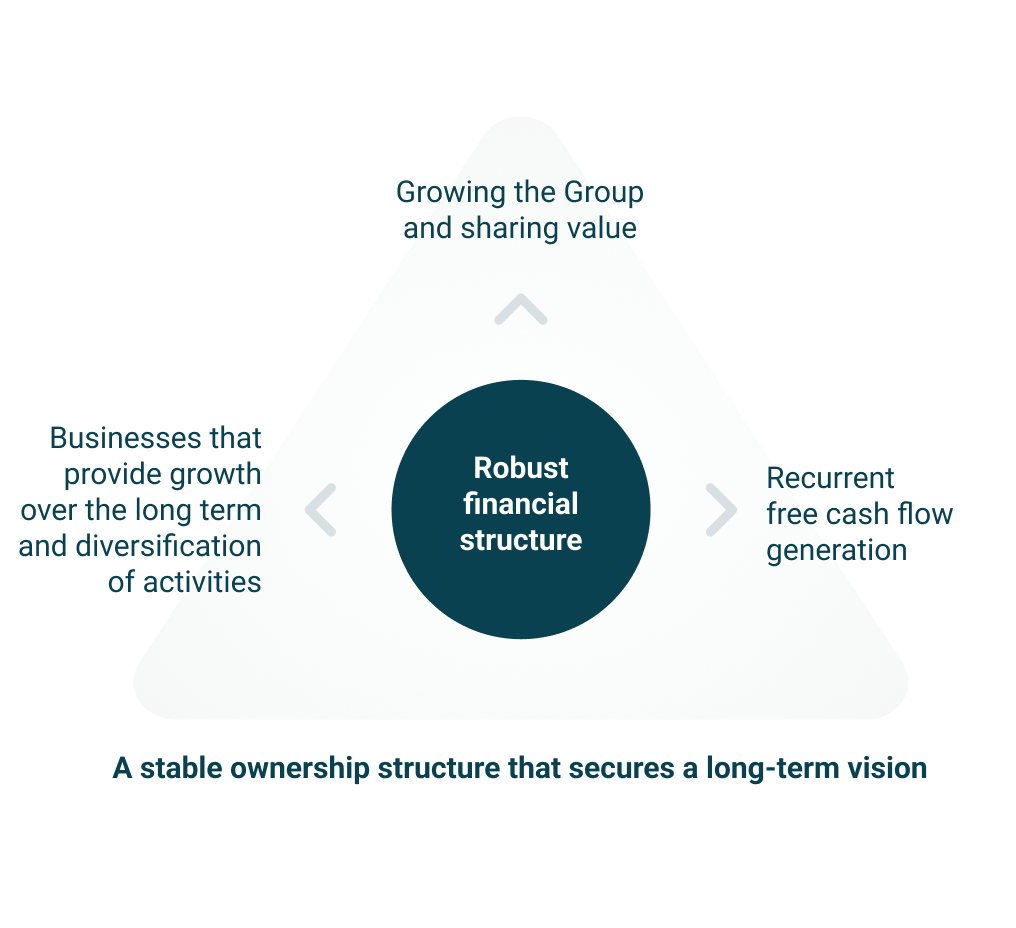 This strategy is supported by the stability of its shareholder base, which ensures a long-term vision, and reinforced by the strength of its financial structure, which safeguards the Group’s independence of action.