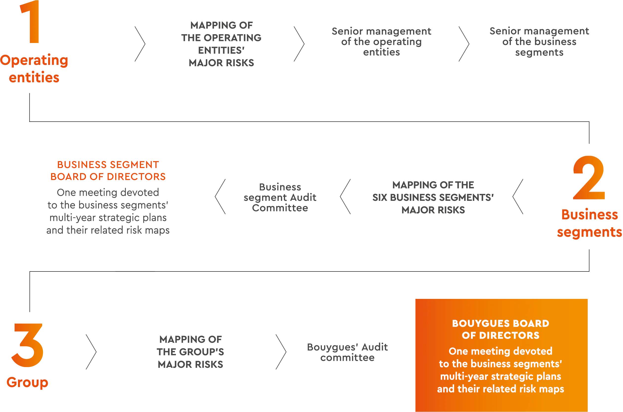 Each year, the major risks – from strategic, operational and financial to legal, IT, ethical, environmental and HR – are identified and assessed at operating entity, business segment and Group levels. Action plans are drafted and monitored to improve control over these risks. This procedure, which follows an annual cycle, involves a large number of operational and support employees who work to supply regular, transparent information to governance bodies and share expertise between generations.